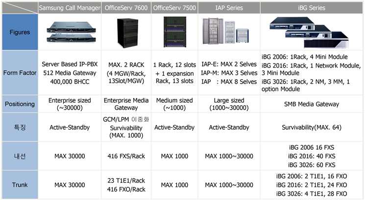 SCM : 호처리, SIP Trunk Interface (SIP Proxy 서버 내장), Gateway제어, 가입자 관리 (IP/Digital / Analog