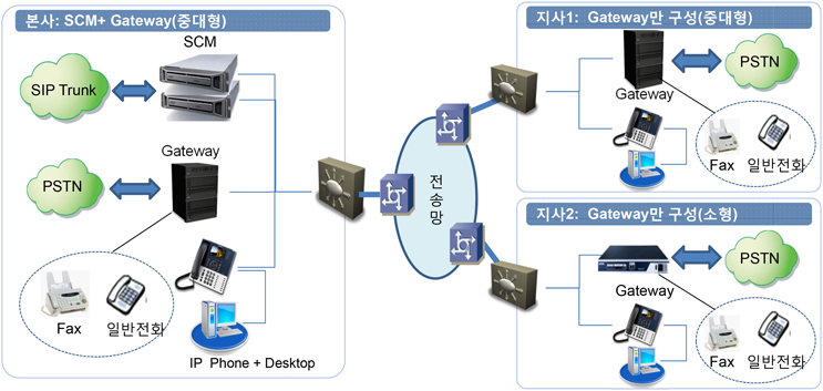 Gateway : PSTN Interface, 일반전화 / Fax Interface, TDM-IP간 미디어 변환, SCM 다운시 Survivability