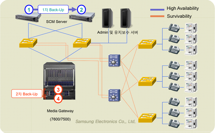 Survivability Mode(생존성)이중화 서버 장애시 Media Gateway에서 호 처리 기능 지원